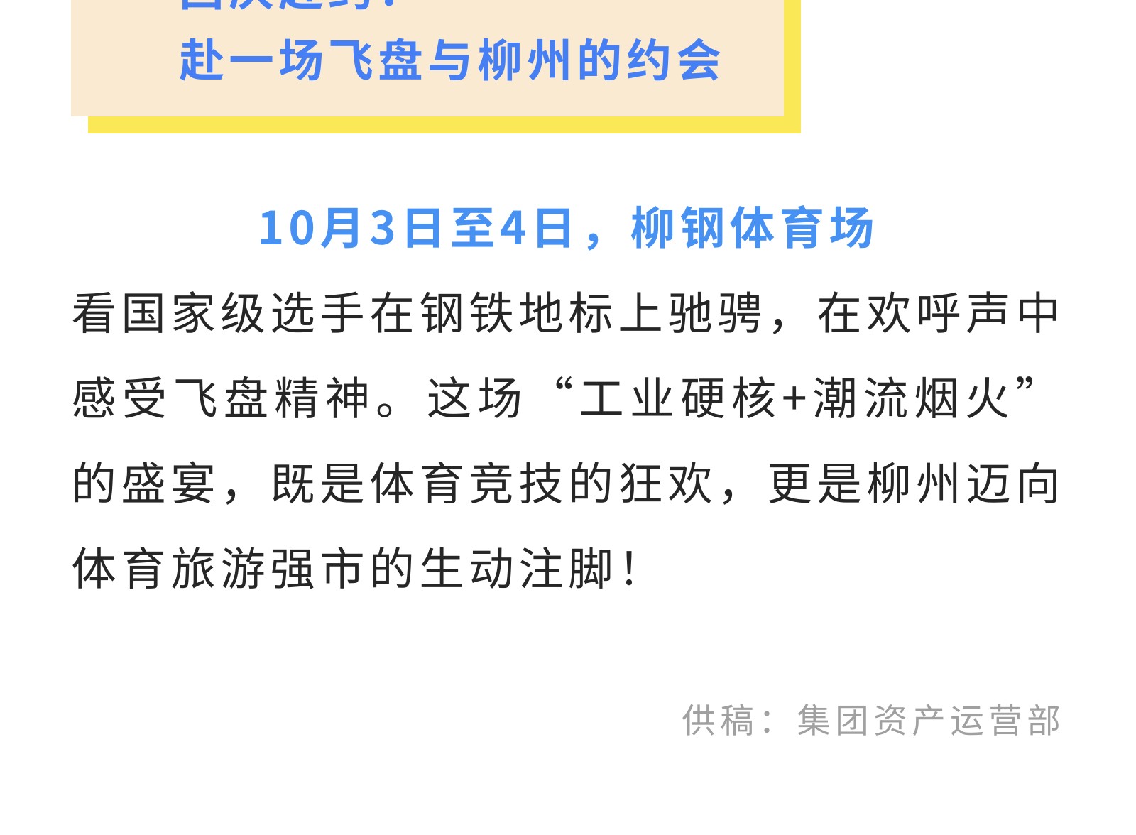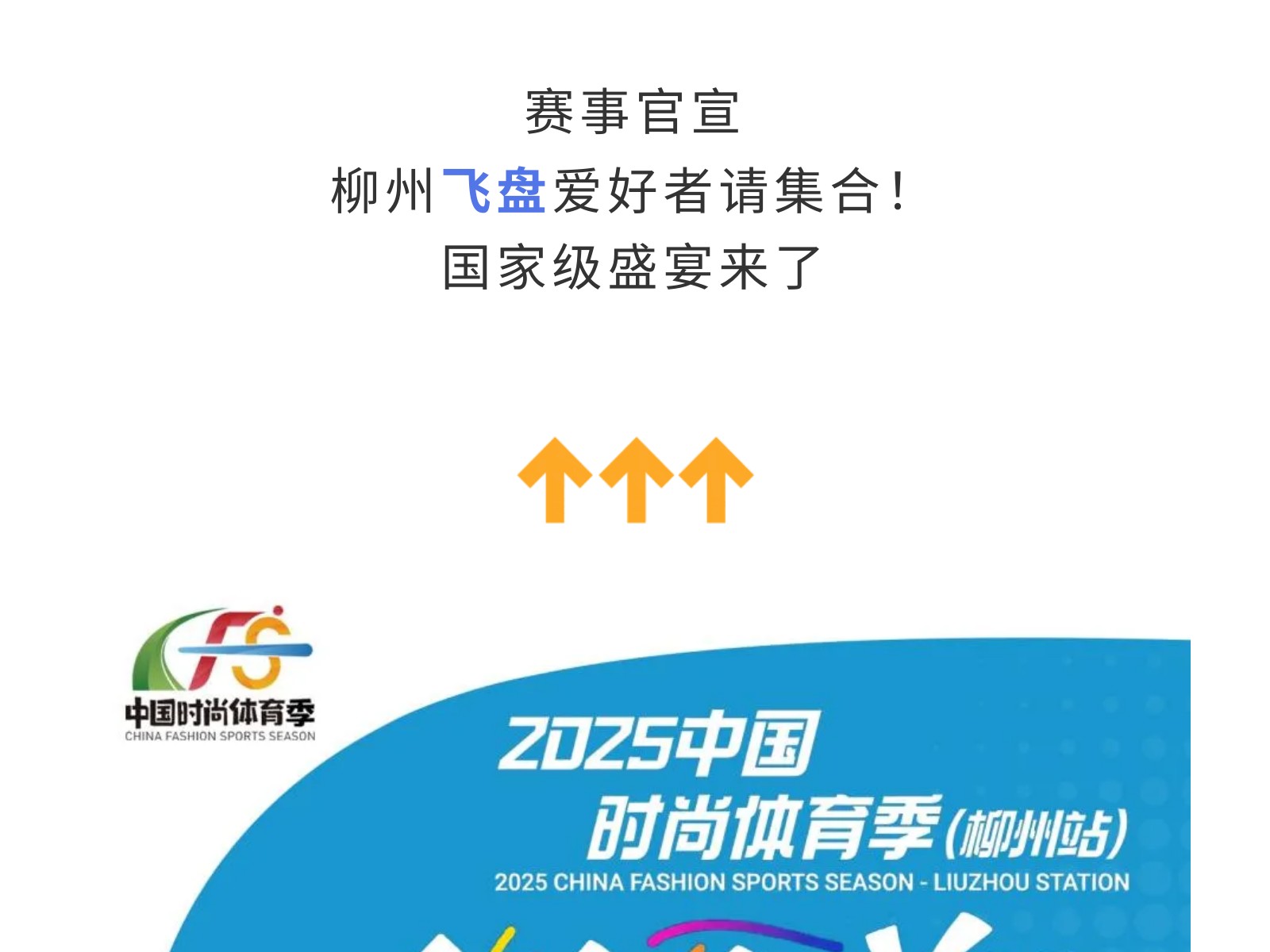 官宣!2025中國時尚體育季(柳州站)飛盤邀請賽來襲!10月3-4日燃情開幕! 發(fā)布時間:2025年09月27日 10時來源:本站原創(chuàng)瀏覽:19 人次